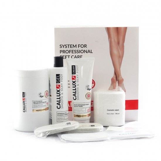 În etapa finală a tratamentului, se recomandă un scurt ritual de relaxare – baie de picioare in sare CALLUX cu 45% uree, apoi masează în piele crema cu absorbtie rapida CALLUX CREAM.